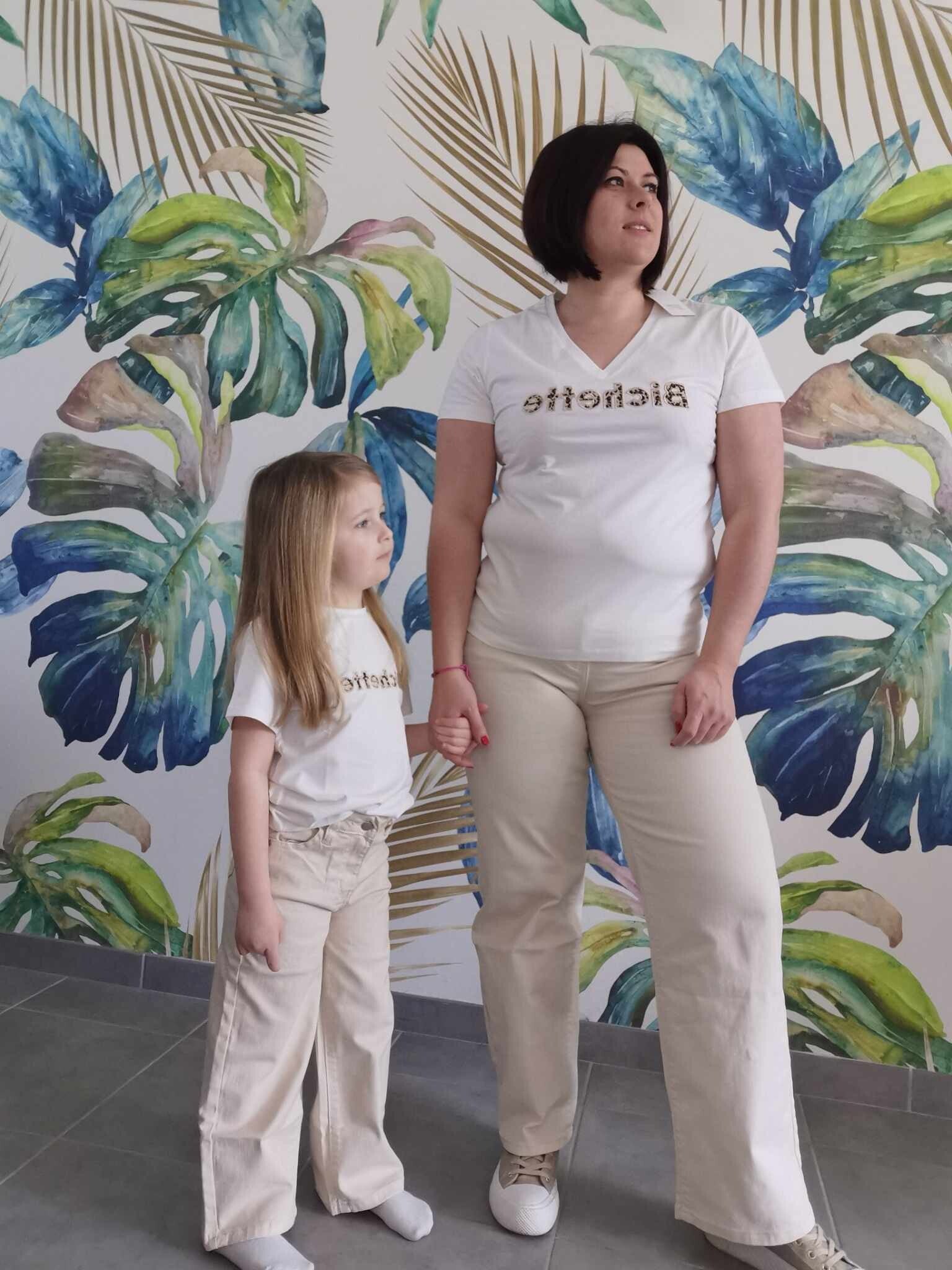 jean large beige avec coeur doré brodé sur la poche arrière